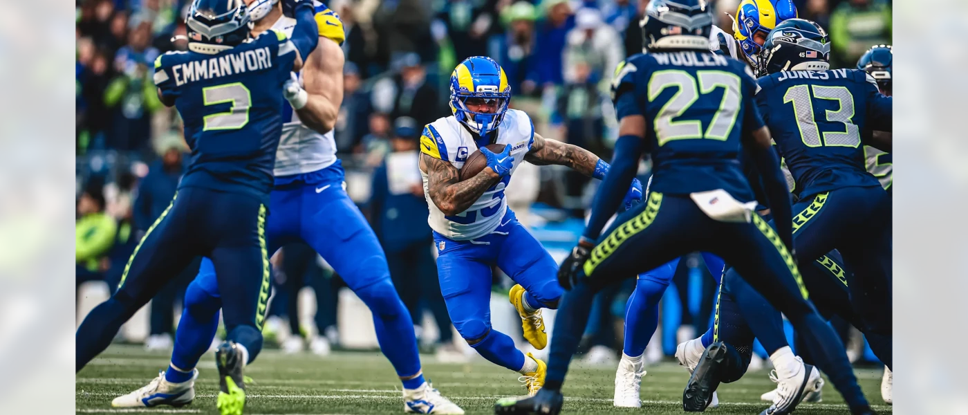 Zu Beginn des letzten Quarters flog Kamren Kinchens genau durch die O-Line der Seahawks zu Sam Darnold. Dieser Sack beschwörte den Seahawks Punt, den jetzt Kyren Williams kontrollierte. Von tief in der eigenen Hälfte hatte die Rams Offense die große Chance, das Spiel in Richtung LA zu lenken.