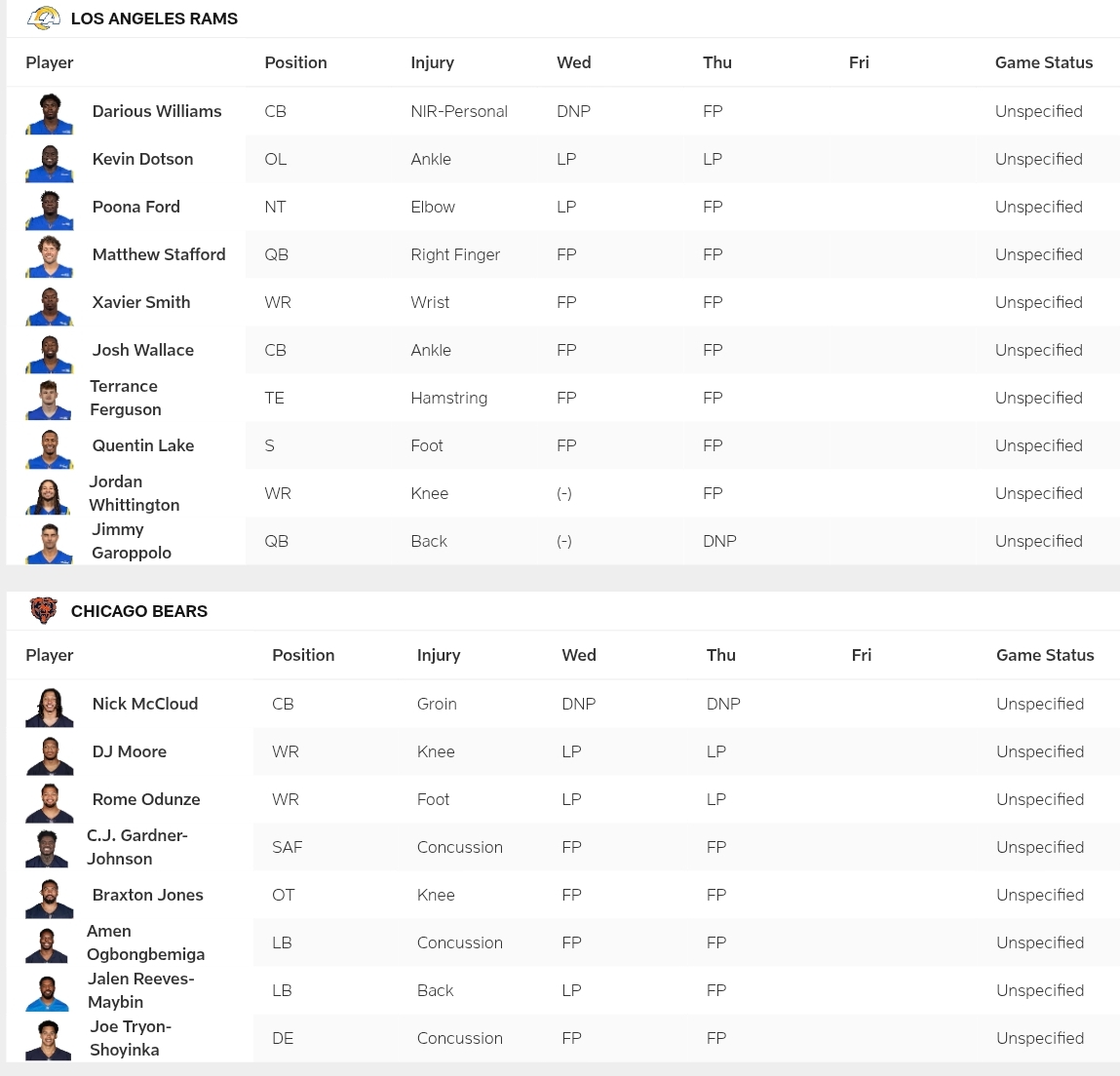 Injury Report