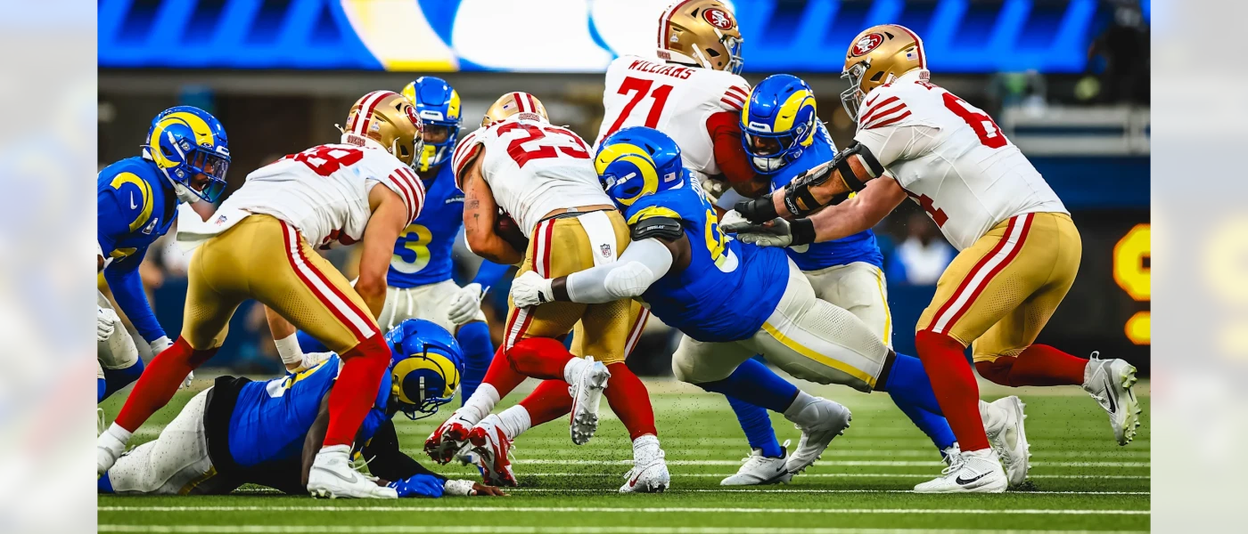 Nach der Pause hatten die Rams zwar Ballbesitz, aber konnten nach mehreren Incompletions nur mit einem Punt vom Feld gehen. Immerhin konnte die Defense durch gute Run D San Francisco nur bei einem Field Goal halten, die damit ihre Führung auf 20-7 ausbauten. Durch einen Tiefen Catch von Tutu Atwell kamen die Rams zum zweiten Mal an diesem Abend in die Red Zone und schlossen den Drive mit einem Touchdown auf Puka Nacua ab. Dies konnte Stafford dann nach einem kurzen Drive von San Francisco auch wiederholen, dieses Mal auf Kyren Williams, um zu Beginn des letzten Viertels mit den 9ers gleich zu ziehen. Die Führung blieb den Rams leider aufgrund eines geblockten Extrapunktes verwehrt. Dem folgten jeweils ein 3&Out beider Teams und ein weiteres San Francisco Field Goal. Kurz vor der 2 Minute Warning konnte Kyren Williams die Rams an die 3 Yard Line laufen und viele Rams Fans hatten bereits Visionen vom großen Comeback und der Ersten Führung des Spiels, jedoch entwickelte Williams nach seinem extrem guten 20 Yard Run wieder Butterfinger und verlor den Ball an der 1 Yard Linie, als er getackelt wurde. Die Run D konnte tatsächlich 3 minimale Runs von CMC erzwingen und Stafford bekam mit 42 Sekunden noch einmal die Chance ein letztes Mal in der regulären Spielzeit anzugreifen. Diese nutze er effizient und Joshua Karty konnte den Spielstand ausgleichen und das Spiel mit 23-23 in die Overtime kicken. Die Rams gewannen den Coin Toss und entschieden sich dafür, San Francisco das erste Angriffsrecht unter den neuen Overtime Regeln zukommen zu lassen. Dieses beendeten sie mit einem Field Goal und die Rams waren gezwungen, nachzuziehen. Nach 5 jeweils kurzen Pässen fanden sich die Rams mit 4 Minuten auf der Uhr bei viertem und eins tief in der San Francisco Red Zone an der 11 Yard Linie. mit einem Field Goal wäre das best Case Szenario vermutlich ein Tie, also hat eigentlich jeder die Entscheidung von Sean McVay verstanden dafür zu gehen... Deutlich kontroverser jedoch war die Entscheidung den Ball aus Comeback König Staffords Händen zu nehmen. Nach dem gescheiterten QB Sneak letzte Woche entschied man sich für einen Kyren Williams Run... Ohne Gain... Spielende, Heartbreak Rams, Sieg San Francisco.Our ball after the break. pic.twitter.com/Sds1JiFfoo